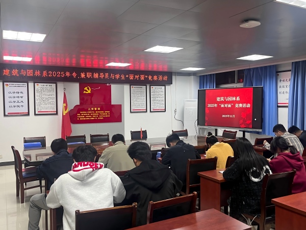 为深入落实学院学生工作期中检查要求,切实检验辅导员联系学生、开展工作的实际成效,11月13日,建筑与园林系组织开展2025年专、兼职辅导员与学生“面对面”竞赛系赛,全体专兼职辅导员及部分学生代表参与此次活动。